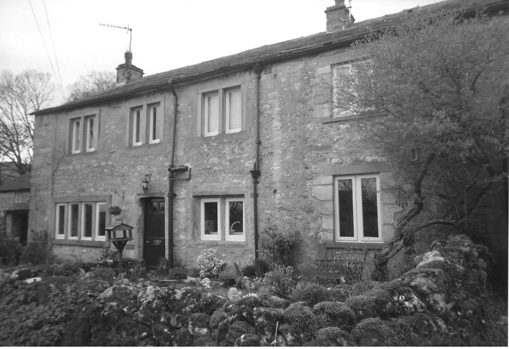 ![]() | Montrose, 3 Cherry Cottages The exact age of Cherry Cottages is not known and although the deeds go back to 1898, it is presumed to be much older. 1 Cherry Cottages must have been an addition as there are corner stones between 1 and 2. 2 and 3, now Montrose, had originally been one house, an existing door frame between the two cottages was found, but were separate in 1898 when the deeds start. They were re-combined in 1985. It is rough stone, rubble fill construction with horse hair plaster and lath and plaster ceilings. There is a story about the houses that they were poorly built by two brothers, using begged and borrowed material. There is one supporting beam which stops short of a wall and is met by another, cut to fit, which might add truth to this story. There are no foundations and the cottages have a tendency to lean downhill! The internal stairs are of stone. Part way up the stairs in number 3 is a small alcove in the wall believed to be a candle hole, where a candle will burn without guttering even in a draught. When the two cottages were being re-combined in 1985 a layer of broken off slates just below gutter level in number 2 gave rise to the thought that this might have been the remains of a barn porch roof. This theory is supported by the discovery of a layer of cobbles about 12 inches below current ground level at the same side of the house, which could have been a cobbled yard. There is also a walled up doorway, possibly a shippon doorway, which had been obscured on the inside by a chimney breast. Perhaps this was one of the earliest barn conversions? In the 1960s the occupants feared they would have to move because they believed there was a demolition order on the cottages. However by the 1970s they were given grant aid to install a flush toilet and eventually a bathroom Number 2 was occupied by Bill Wild until his death in 1984. He had moved to Malham in the 1950s. His cottage in 1984 still had no WC, one cold tap, four light bulbs, two socket outlets and no hot water except for a little Creda Corvette. Quite a spartan existence for such a well respected craftsman. He left his mark on two of the splitting roof beams by attaching brackets to hold them together. The two cottages now form one private dwelling. |