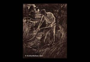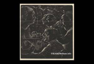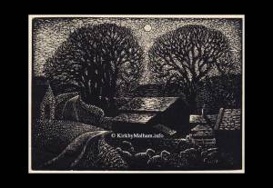 Local examples of his work may be seen in the church at Kirkby Malham, where there is a wonderful stainless steel kingfisher, a Christmas Crib made from carved wood, the font cover in wood and wrought iron and cards showing reproductions of some of his wood engravings, on sale to raise money for the church.