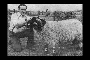 Frank Sharp with his trophy winning Dalesbread tup – Malham Show 1981